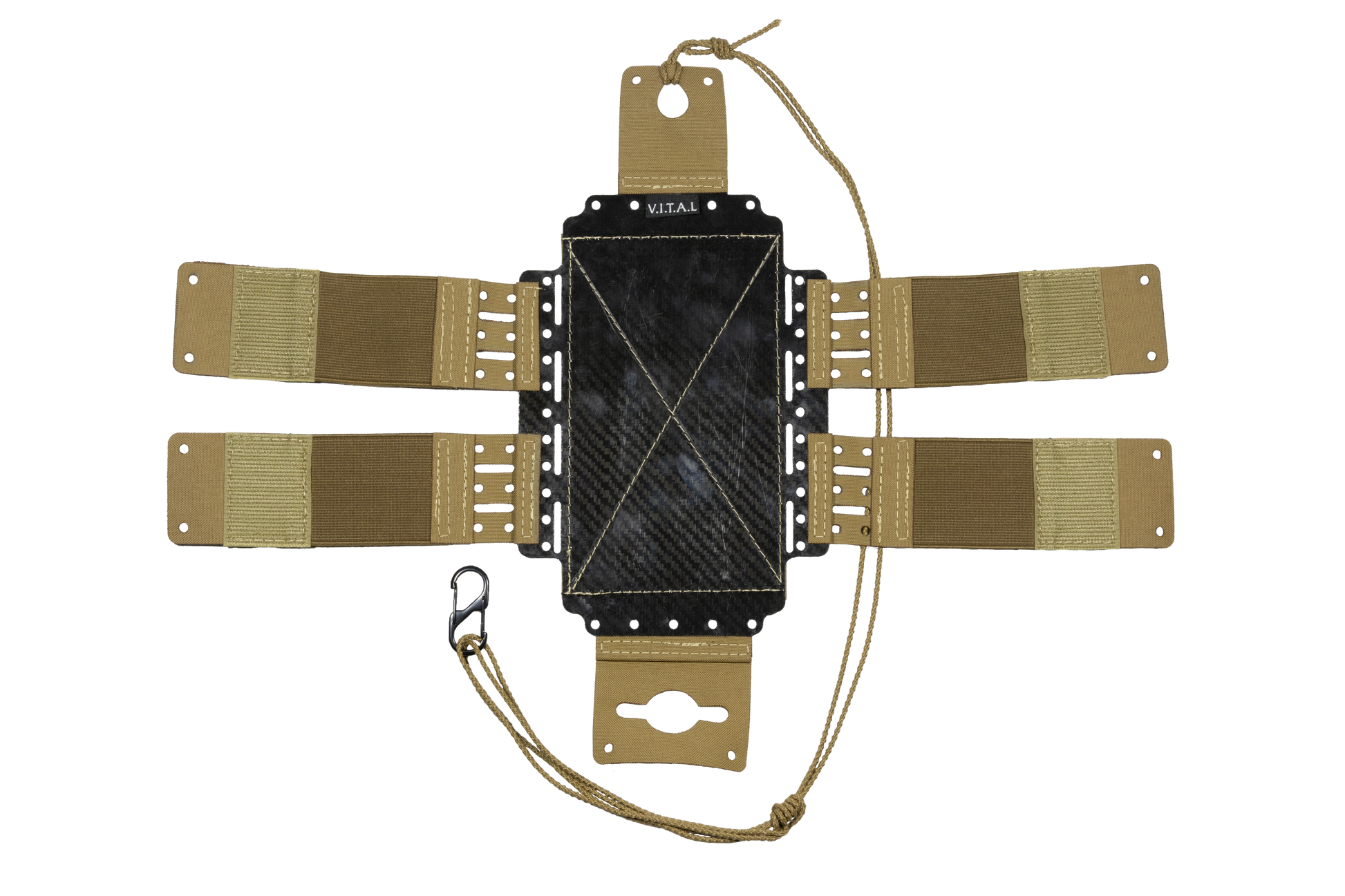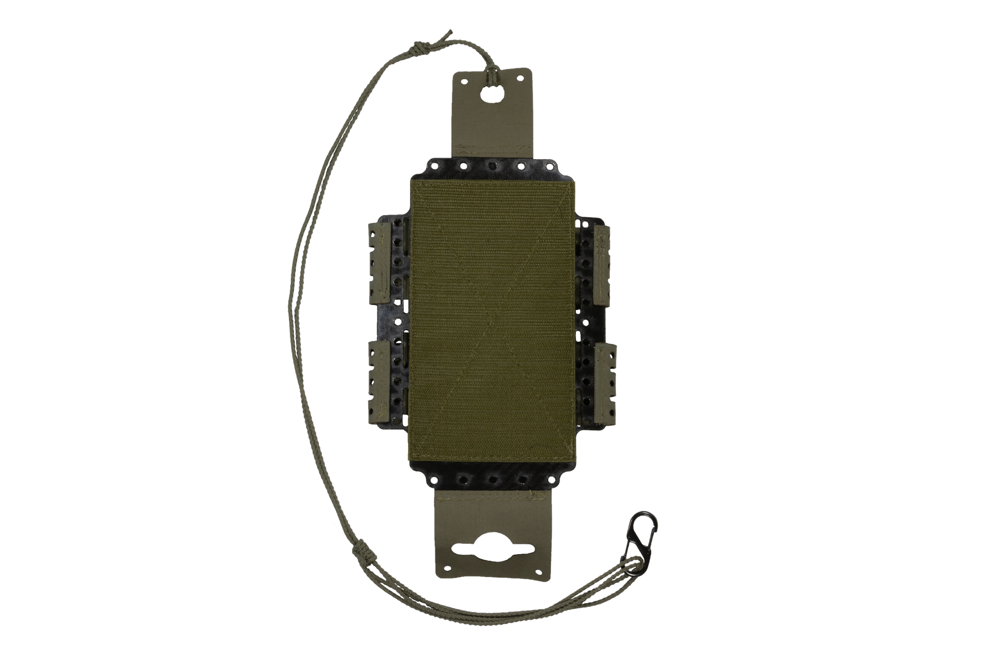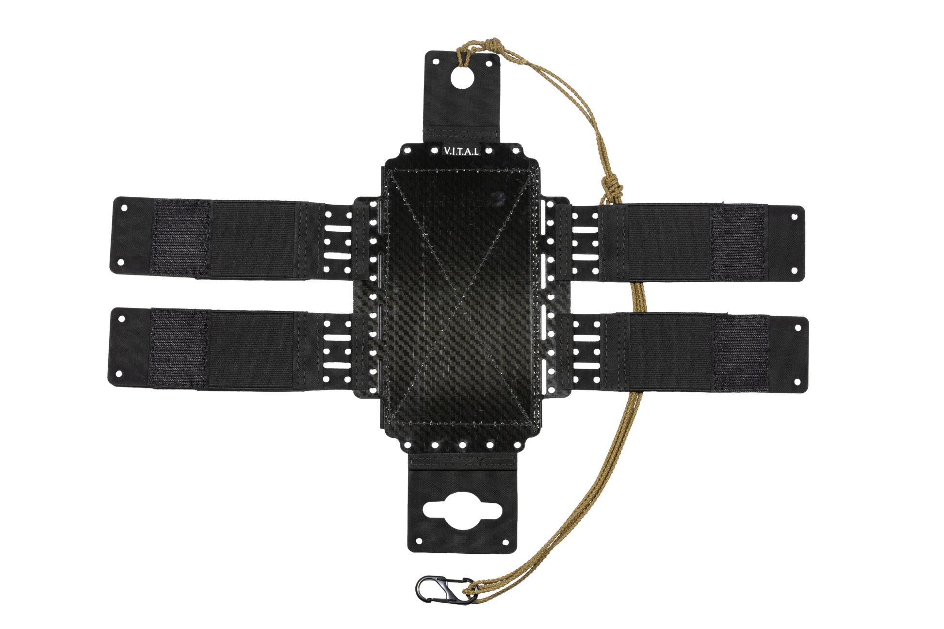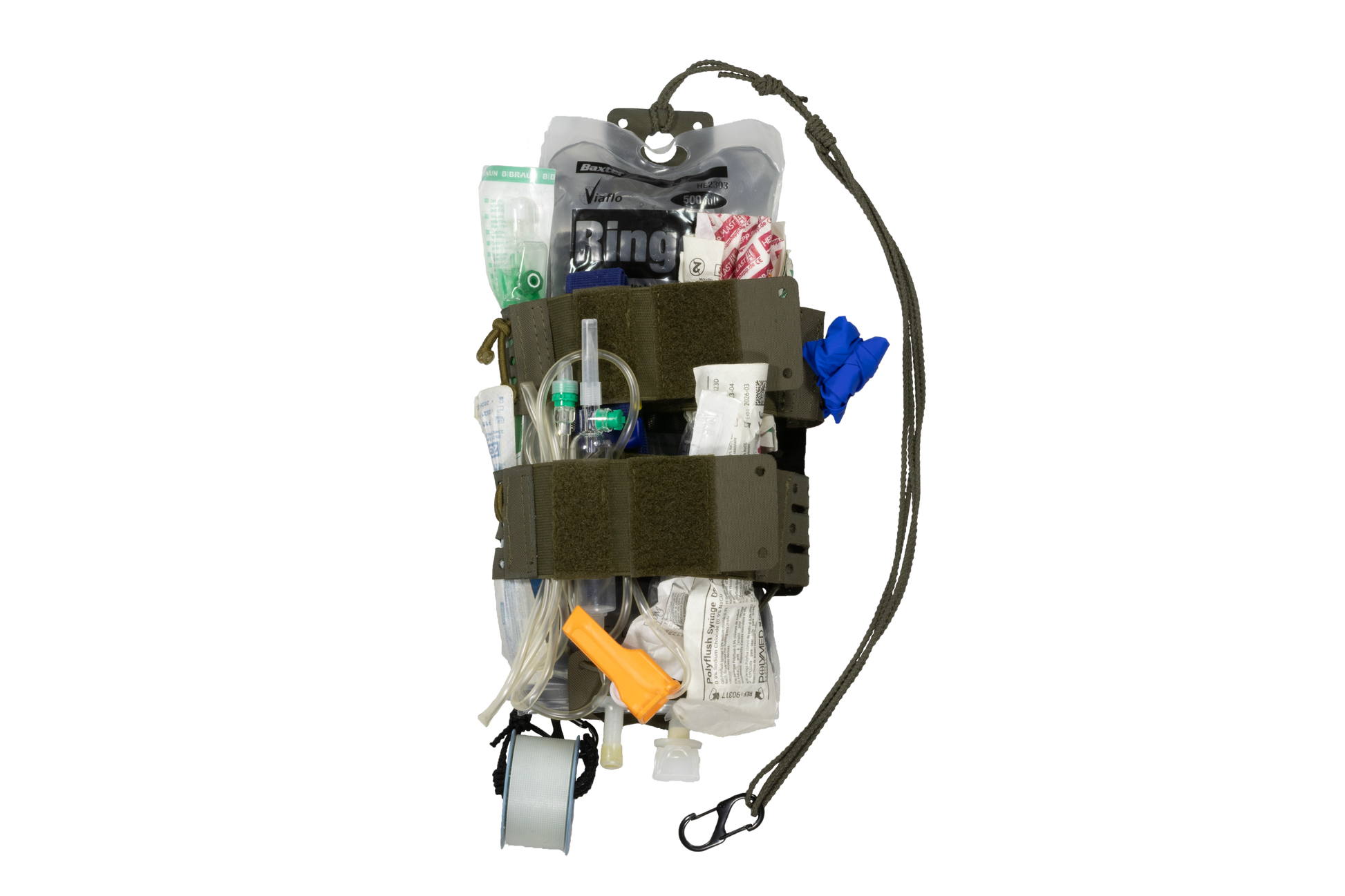 I.V. Pro™ — це ультраплоский модуль на липучці, який дозволяє розкласти набір для внутрішньовенних ін'єкцій за кілька секунд, фіксує всі компоненти на місці та може бути підвішений за потреби на дереві, дзеркалі автомобіля або будь-якій імпровізованій точці кріплення без зайвих зусиль, навіть однією рукою.